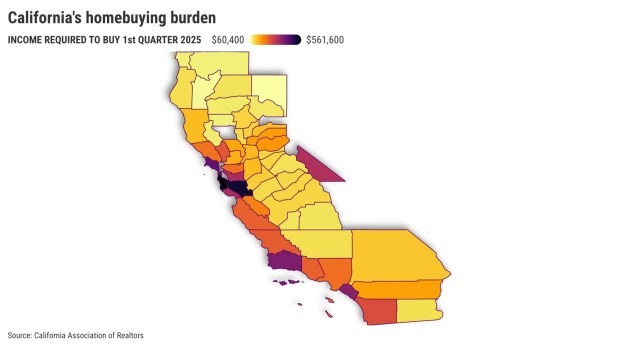 That’s comparing California Association of Realtors’ homebuying affordability data for the first quarter of 2025 to the final three months of 2019, just before the coronavirus disrupted the economy.